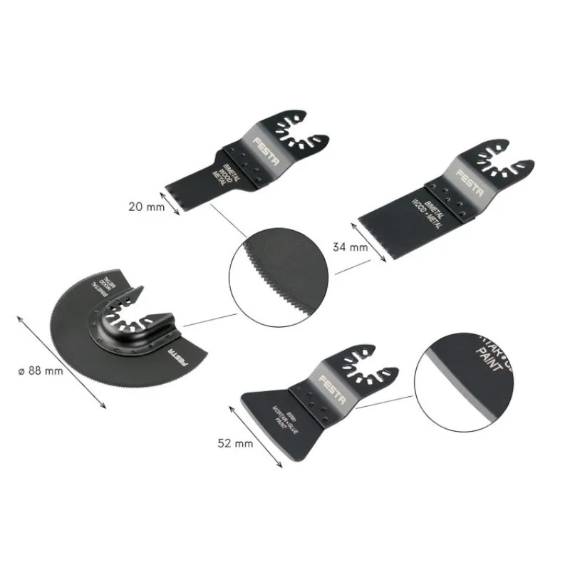 Lev Festa OIS befogású multiszerszám fej készlet 4 részes vegyes felhasználásra 3 Bi-metal, 1 SK5, 24322