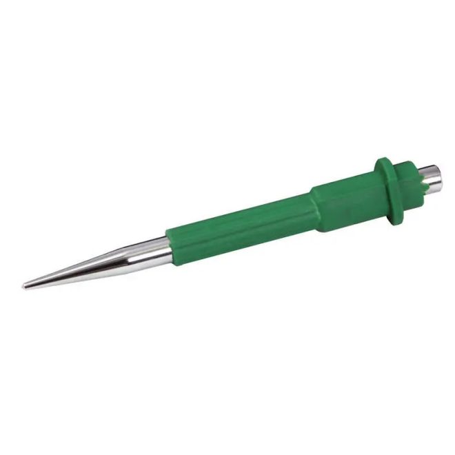 Minőségi acél lyukasztó/pontozó gumi fogantyúval a kényelmes munkavégzés és a rezgés elnyelés érdekében. Megnövelt burkolat szélesség a kéz védelméért a felső részen. Tartós és erős CrV acélból.