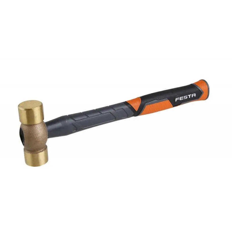Sárgaréz ütő FESTA 0,5 kg, ütőfelületek átmérője 30 mm, kiváló minőségű üvegszálas nyél gumírozott TPR markolattal,