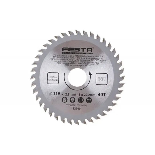 Lev Festa TCT körfűrész tárcsa, körfűrészlap 115x22mm, Z40, fához, Vídia lappal