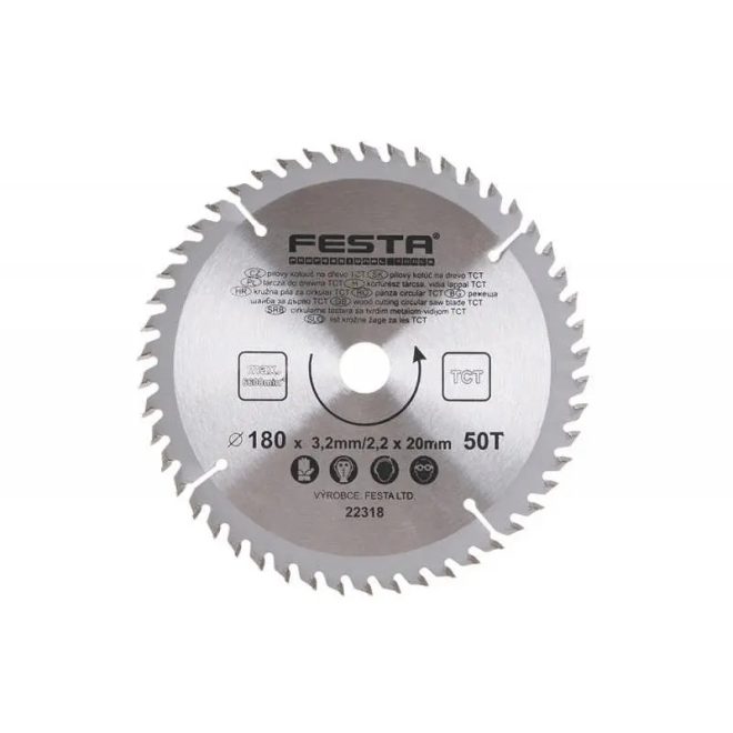 Lev Festa TCT körfűrész tárcsa, körfűrészlap 180x20mm, Z50, fához, Vídia lappal, 22318