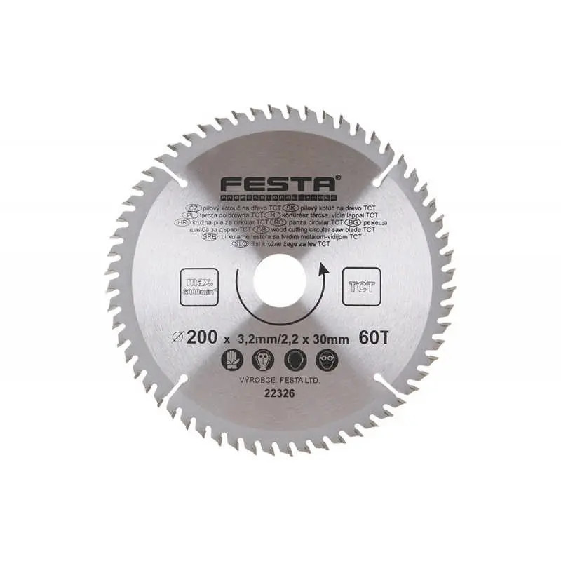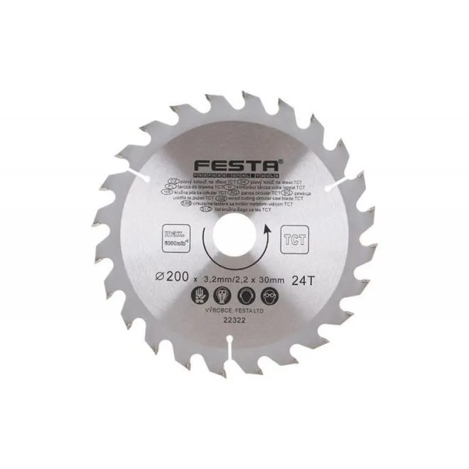 Lev Festa TCT körfűrész tárcsa, körfűrészlap 200x30mm, Z24, fához, Vídia lappal, 22322