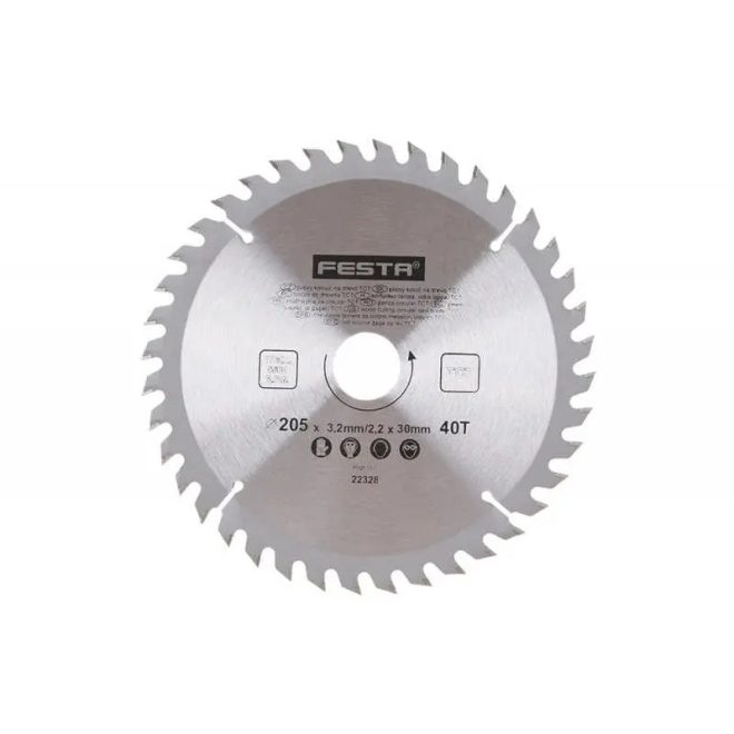 Lev Festa TCT körfűrész tárcsa, körfűrészlap 205x30mm, Z40, fához, Vídia lappal, 22328