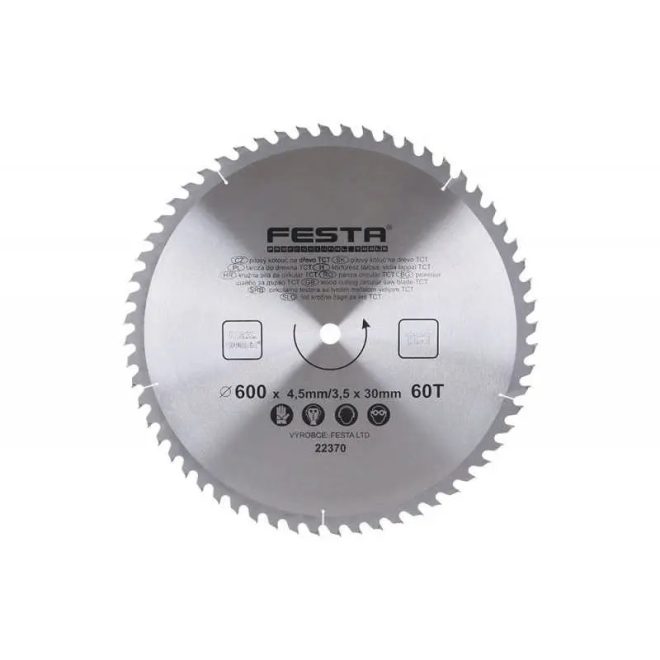 Lev Festa TCT körfűrész tárcsa, körfűrészlap 600x30mm, Z60, fához, Vídia lappal, 22370