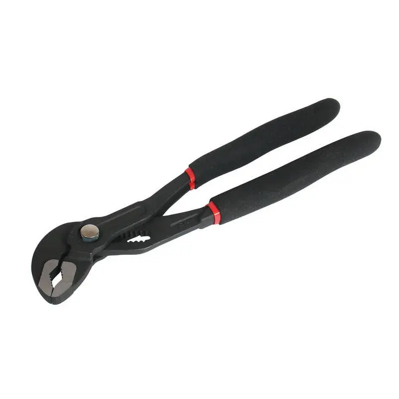 FESTA vízpumpafogó Erős és tartós fogó, amely króm-vanádium acélból (CRV) készült, tömör kovácsolásból. A kívánt pofatávolság gyorsan és pontosan beállítható egy kézzel is- gombnyomással. Kiváló minőségű edzett CrV acélből (ezüstacél), lágyított csúszásmentes bevonattal ellátott fogantyúk a jobb munkavégzés érdekében. Állkapocs alakú köszörült fogakkal, anyákhoz és csövekhez egyaránt. Az indukciósan edzett fogazott fogófelület még a sima csöveken is biztos fogást biztosít.