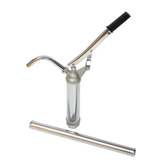 Acél dugattyús szivattyú Teleszkópos szívócső - maximális mélység 88 cm Egyszerű felhelyezés a hordó felcsavarásával, a szívócső hosszának beállításával, egyszerű vezérléssel és folyadékadagolással Különösen alkalmas olajokhoz, dízelhez Folyadék térfogata löketenként - 0,3 l, teljesítmény kb. 16 l/perc. (a szivattyúzás gyakoriságától függ)