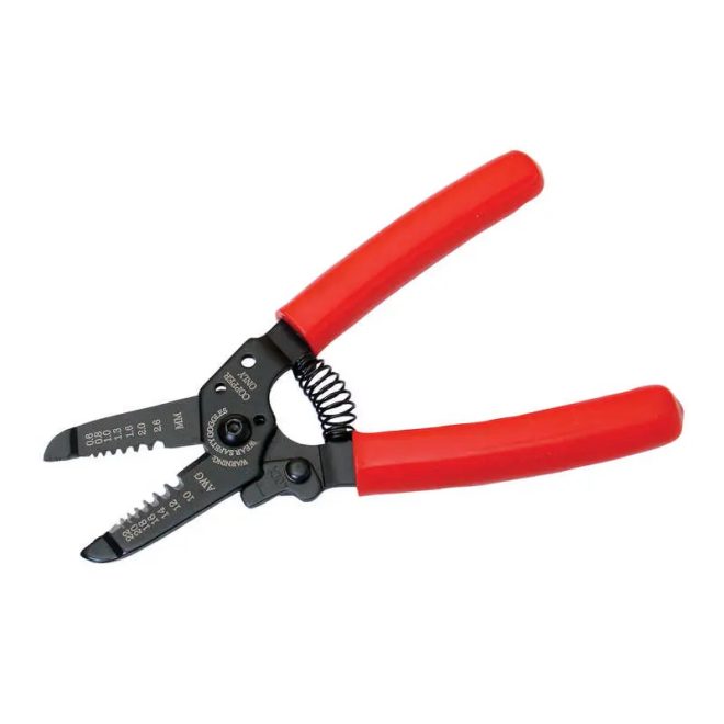 Univerzális professzionális csupaszító és vágó fogó 0,6-0,8-1,0-1,3-1,6-2,0-2,6 mm átmérőjű, nemcsak elektromos berendezésekhez, hanem autóvillamossági szerelők és modellezők, rádióamatőrök és villamosmérnökök számára is alkalmas. Az univerzálisan használható szerszám minden profi- és hobbibarkácsoló nélkülözhetetlen eszköze. Vörösréz és alumínium drót vágásához. Drótvágásra alkalmas élesített heggyel rendelkezik.