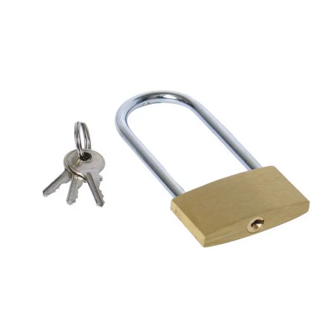 40 mm-es sárgaréz zártest. Sárgaréz betét. Kulcsok: 3 Súly: 65 g Edzett acél ív a jobb vágásállóság érdekében.