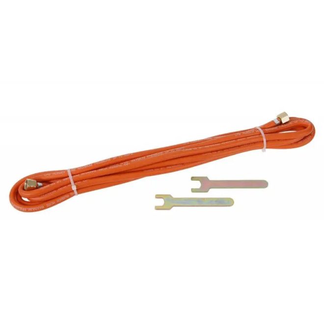 • A tömlő mindkét oldalán G 3/8" menettel van felszerelve az égőhöz és a redukciós szelepen keresztül a bombához való csatlakozáshoz
