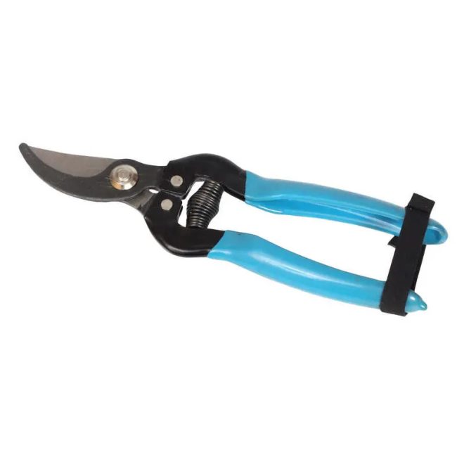 Kerti olló, egyenes penge, gumírozott ergonómikus formájú nyél, vékony egyenes pengék