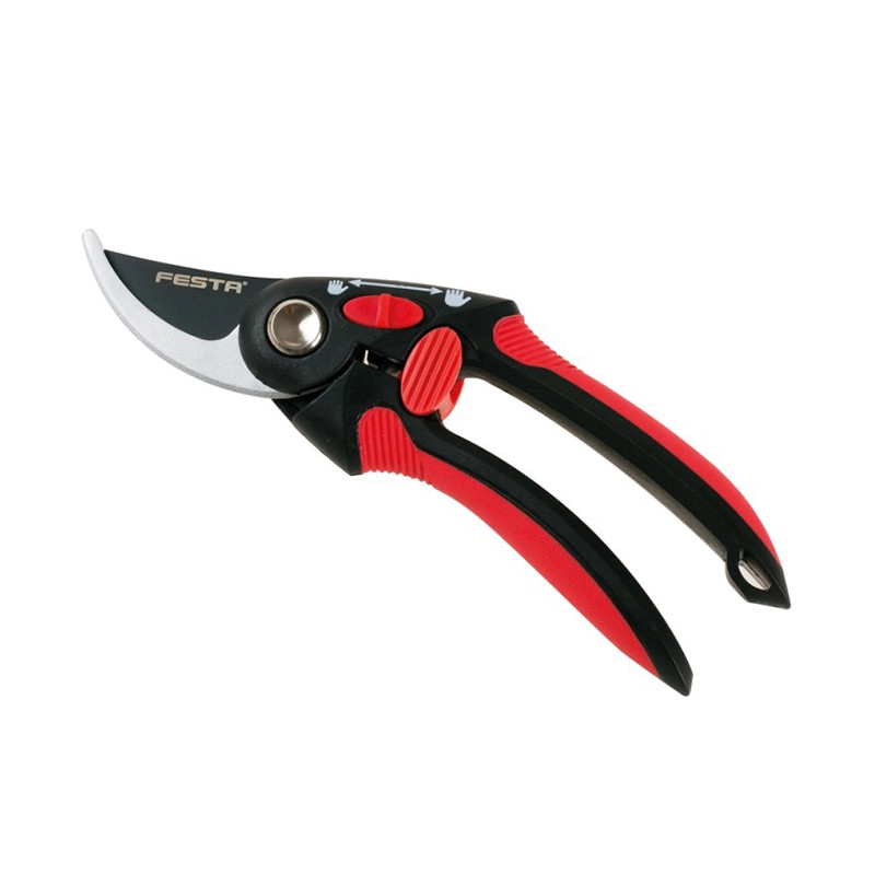 Kerti olló, teljes hossza 21 cm Ollópenge japán HCS SK-5 acélból teflon bevonattal - jobb vágás- és pengevédelem Kétkomponensű markolat - nylon gumival a markolatrészben - két lehetőség a penge méretének / fogantyútartományának beállítására Fák és növények vágásához, kertészeti és dekorációs munkákhoz, maximális vágási átmérő 15 mm