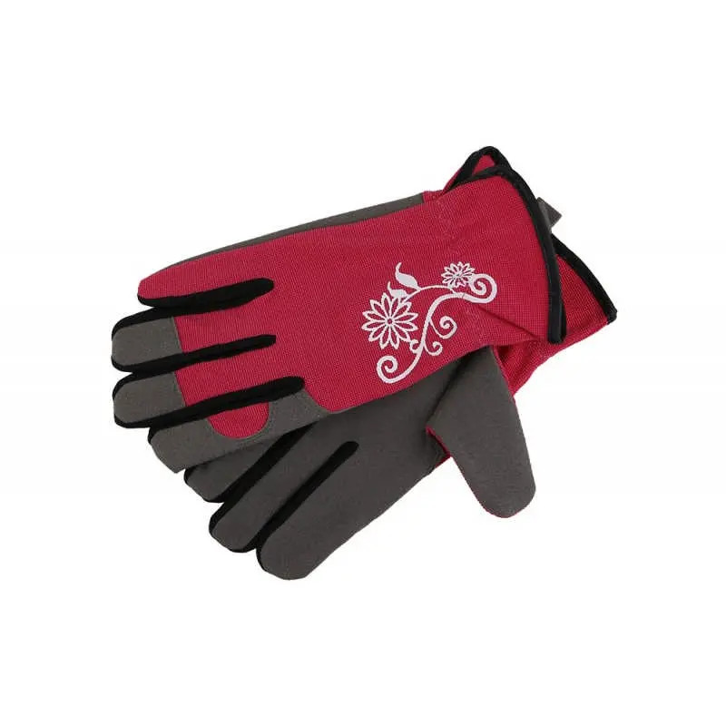 Speciálisan kerti munkákhoz kifejlesztett kesztyű tenyérben mesterséges velúrból, a kesztyű hátoldala elasztikus Spandex szövetből, csuklón összehúzó gumival, dekoratív nyomattal. 7-9 méret