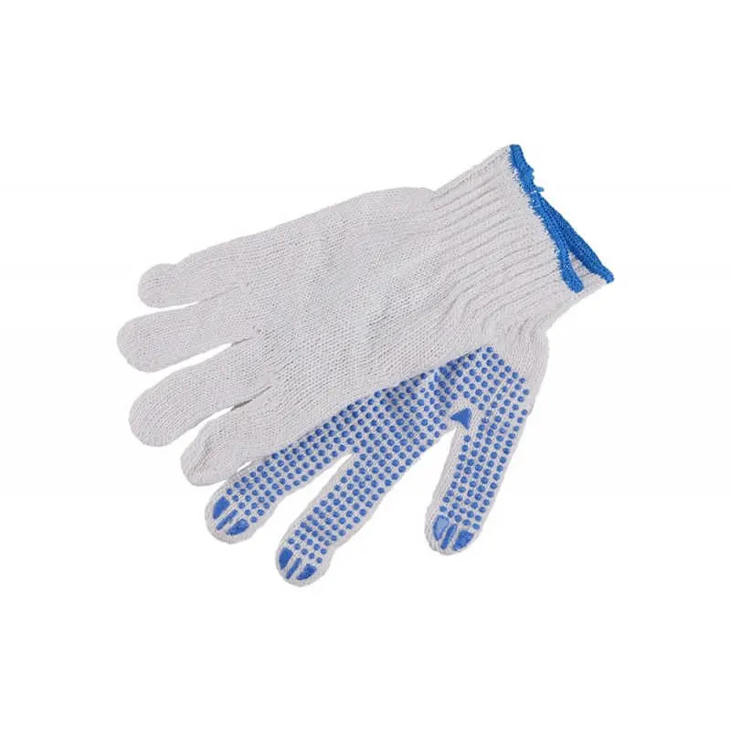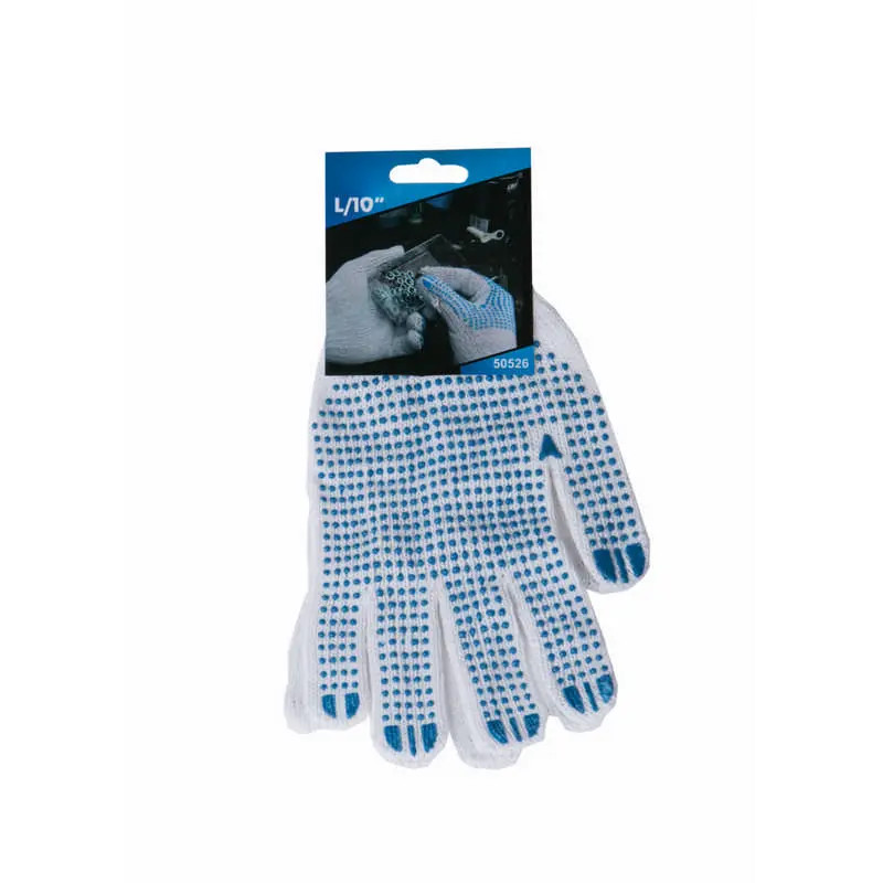 Lev mv kötött PES/pamut fehér cérnakesztyű, kék pettyek 10-es