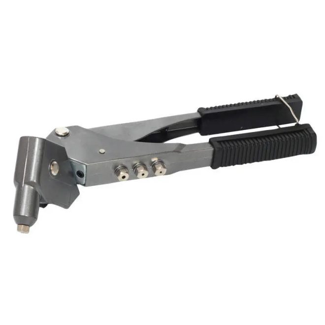 FESTA szegecselő fogó 360° -ban forgatható fejjel Cr - MO pofák - minden típusú szegecshez Robusztus acélváz, kiváló erőátvitel az állkapocs felé bármilyen beállított helyzetben, műanyag fogantyúk Szegecseknél: 2,4 - 3,2 - 4,0 - 4,8 mm Nehezen hozzáférhető helyeken történő szegecseléshez Súlya 620g