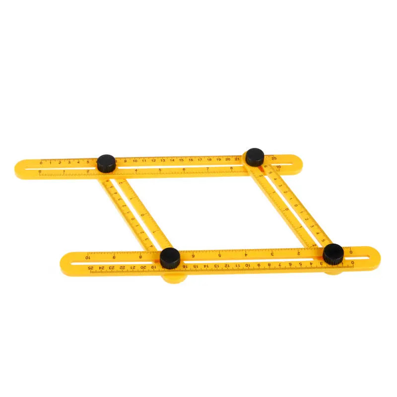 Többcélú vonalzó és szögmérő eszköz, mely kiválóan alkalmas összetett formák és szögek létrehozásához, másolásához, valamint ismétlődő vágásokhoz. Használatával könnyen és gyorsan dolgozhat nehezen hozzáférhető helyeken is. A nagyméretű tekerőszorítókkal stabilan rögzíthető a kívánt szög. Ideális lehet párhuzamos vonalak, szögek rajzolásánál, csempézésnél, térkő, laminált padló lerakáskor, ha a hiányzó darabot meghatározott szögben vágni szükséges. Méretek centiméterben és hüvelykben is feltüntetve.