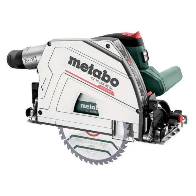 Metabo akkus 18V kézi merülő, körfűrész KT 18 LTX 66 BL +165x20mm fűrészlap +porzsák +metaBOX 340, akku és töltő nélkül, 601866840