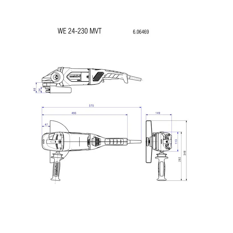 Metabo sarokcsiszoló 230mm 2400W, 6600/min 17Nm, WE 24-230 MVT, lágyindítás, 0-start, 606469000