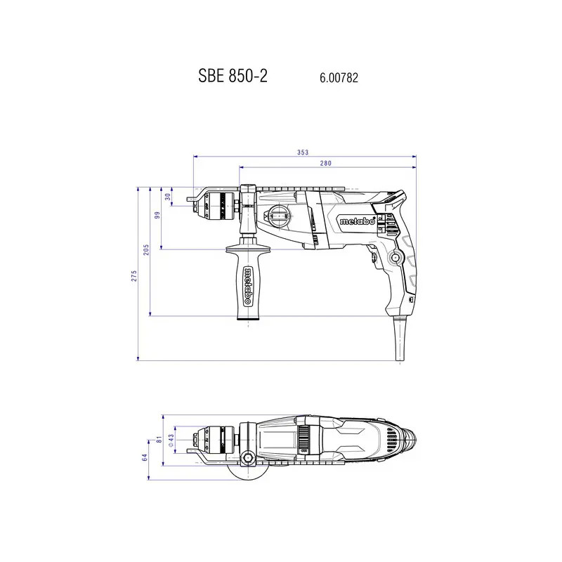 Metabo ütvefúró SBE 850-2 850W, 13mm, gyostokmány, metaBOX 145 L, 600782500