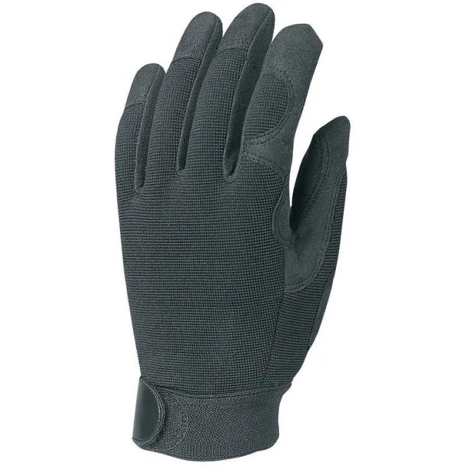 MV bőrkesztyű, fekete szintetikus/fekete PES, tépőzár
