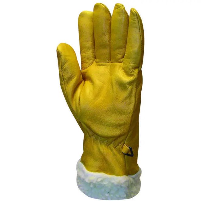 MV bőrkesztyű, téli, Islande, sárga színmarha/szőrmebélés 32cm