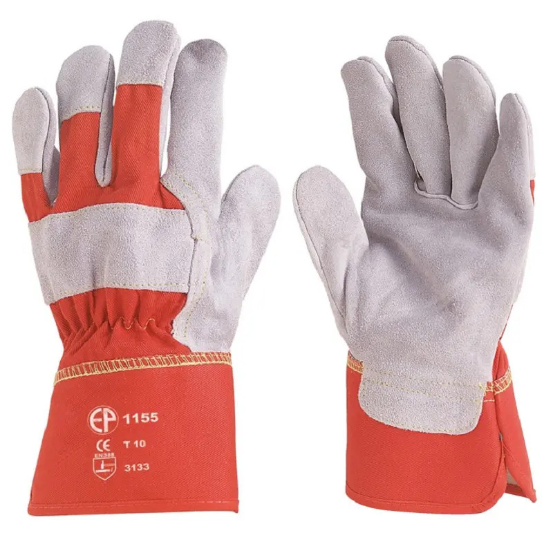 MV bőrkesztyű, vastag szürke marhahasíték/piros vászon kézhát 8, 1155_8