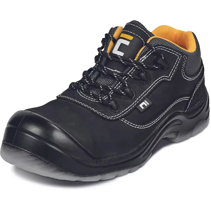 - Biztonsági félcipő fémmentes lábujjvédővel és átszúrás ellen védő köztalppal, PU/TPU talppal. A felső rész kiváló minőségű nubuk bőrből készült.