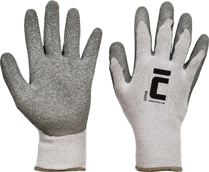 természetes latexbe félig mártott, csúszásgátló tenyérrel és ujjakkal