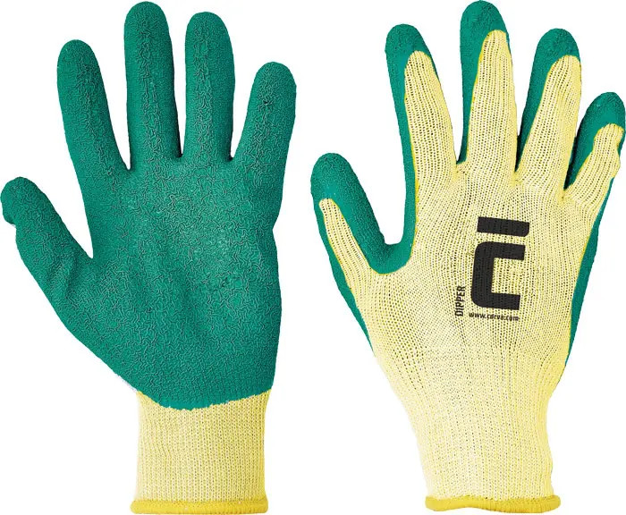 természetes latexbe félig mártott, csúszásgátló tenyérrel és ujjakkal