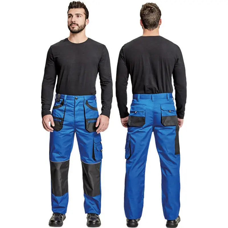 Férfi munkanadrág többfunkciós zsebekkel; poliészter Oxford megerősítéssel a térdrészen. Térdvédő behelyezésére alkalmas térdkialakítás.