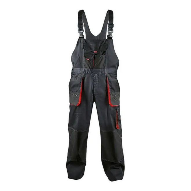 Férfi munkanadrág többfunkciós zsebekkel, poliészter Oxford megerősítéssel a térdrészen. Térdvédő behelyezésére alkalmas térdkialakítás. További színválaszték: szürke/fekete és fekete/piros. Hasonló kivitelezés deréknadrágban.