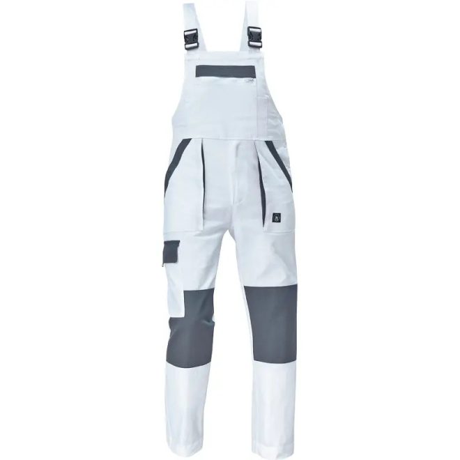 MAX NEO férfi mellesnadrág, kertésznadrág rugalmas derékkal, széles pántokkal, műanyag csatokkal; 2 első zseb, 1 oldalzseb, 1 nagy mellzseb, 2 hátsó zseb; megerősített térdrész; a szárak hossza meghosszabbítható; anyag: 100% pamut, anyagvastagság: 260 g/m2