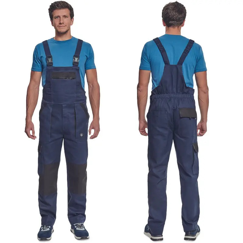 MAX NEO férfi mellesnadrág, kertésznadrág rugalmas derékkal, széles pántokkal, műanyag csatokkal; 2 első zseb, 1 oldalzseb, 1 nagy mellzseb, 2 hátsó zseb; megerősített térdrész; a szárak hossza meghosszabbítható; anyag: 100% pamut, anyagvastagság: 260 g/m2