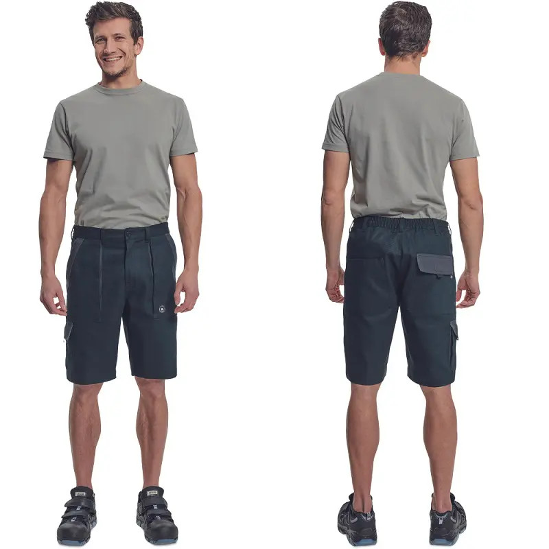 • férfi rövid munkanadrág, szürke díszítéssel a zsebeknél