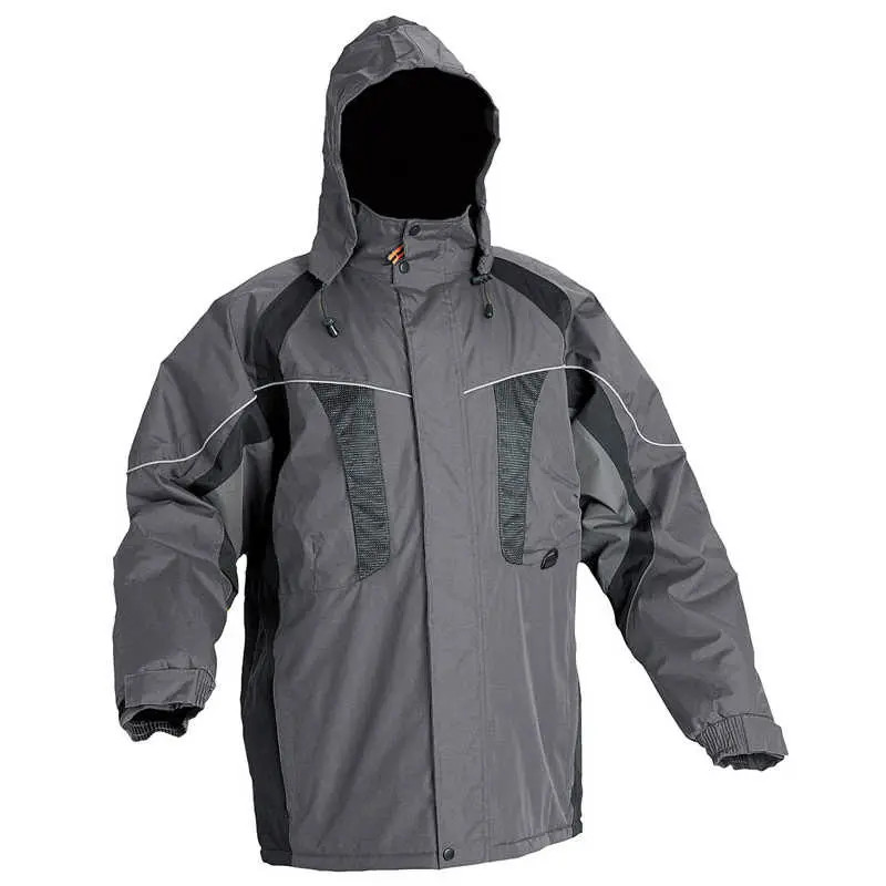 Bélelt vízhatlan anyagú, meleg bélésű dzseki gallérba rejthető kapucnival. A külső szövet kopásállóságot növelő kezeléssel rendelkezik. Az alsó szegés zsinórral szűkíthető, fényvisszaverő kiegészítők. A kabát nagy színválasztékban kapható. Ehhez a kabáthoz vásárolhat hasonló mellényt. Színválaszték: szürke, zöld, piros, kék, fekete.