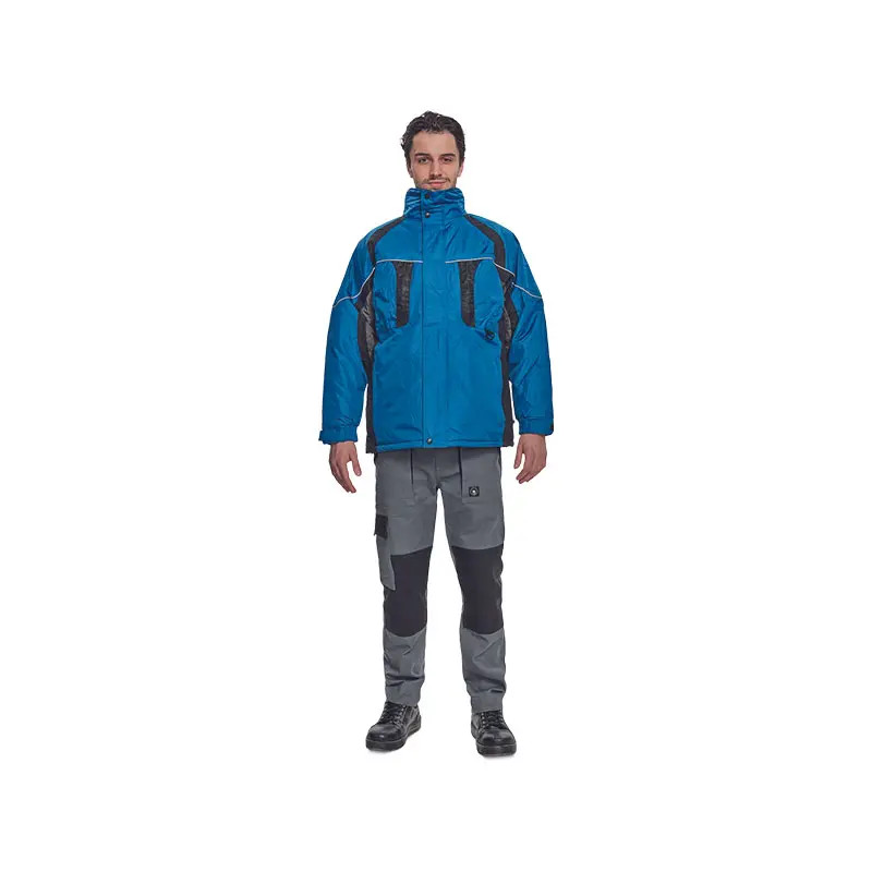 Bélelt vízhatlan anyagú, meleg bélésű dzseki gallérba rejthető kapucnival. A külső szövet kopásállóságot növelő kezeléssel rendelkezik. Az alsó szegés zsinórral szűkíthető, fényvisszaverő kiegészítők. A kabát nagy színválasztékban kapható. Ehhez a kabáthoz vásárolhat hasonló mellényt. Színválaszték: szürke, zöld, piros, kék, fekete.