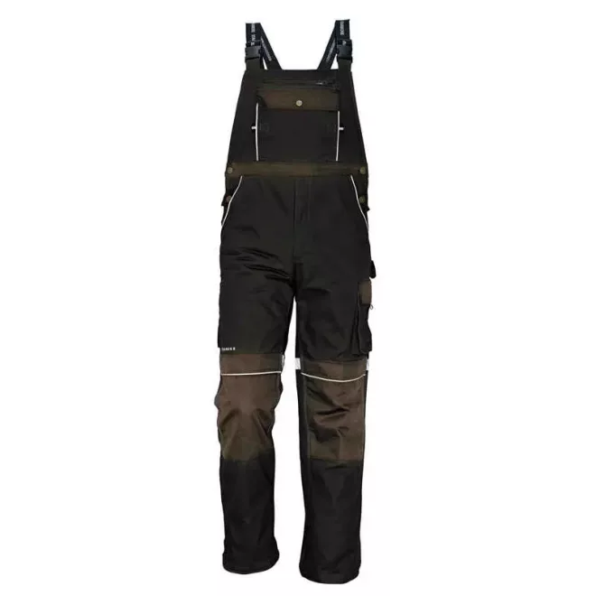 Strapabíró férfi mellesnadrág fém cipzárral és patentokkal, rugalmas derékkal; 6 funkcionális zseb; megerősített térdrész térdvédő behelyezésére alkalmas zsebekkel; fényvisszavető kiegészítők.