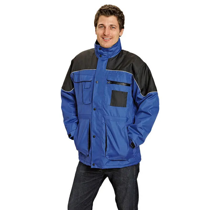 Meleg bélésű, vízhatlan kabát, gallérba rejtett kapucnival, fényvisszavetőrészletekkel. 2 oldalzsebbel, 2 többfunkciós mellzsebbel; a mandzsettáktépőzárral szűkíthetőek.