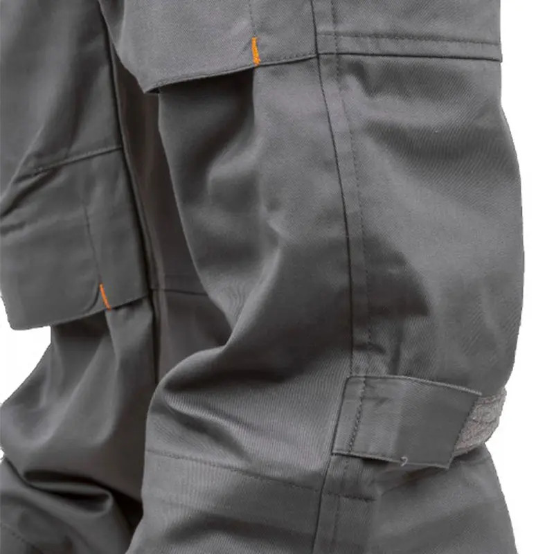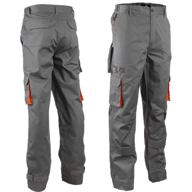 Szürke szín, narancs díszítéssel ellátott comfort fit szabású mellesnadrág. Állítható műanyag csatos vállpántokkal és oldalgombos gumírozott derék résszel rendelkezik. Övbújtatókkal, biztonsági varrással az ülepen. Tépőzárral állítható bokarész, száron még 5 cm-es lehajtási lehetőséggel. Dupla térdfolt bőségránccal és tépőzáras térdeplőtasak, rendelhető térdvédővel (8KNEE).