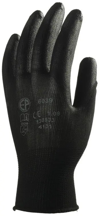 6041- MV fekete precíziós/szerelő poliészter szerelőkesztyű, PU mártott tenyérrel 11
