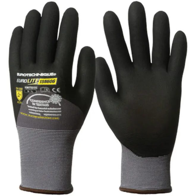 MV Eurolite ökölcsontig fekete mikrohabosított nitril