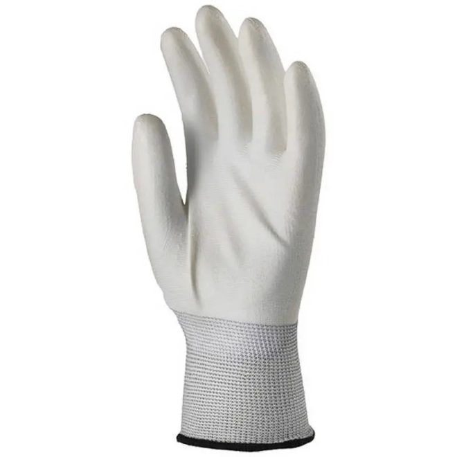 MV fehér precíziós/szerelő poliészter kesztyű, PU mártott tenyérrel 10, 6020 KESZTYŰ