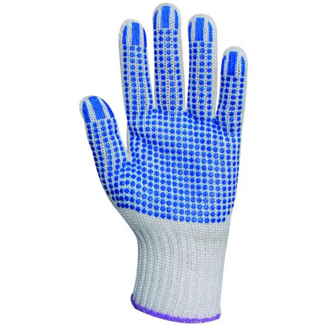 MV kötött, kék pöttyös, vastag polipropilén/pamut kesztyű