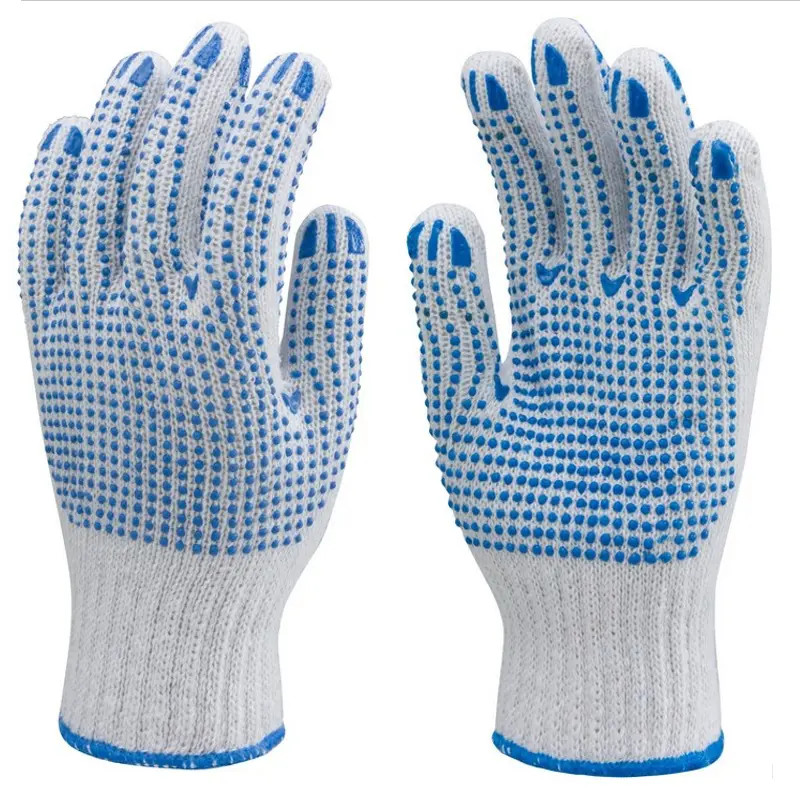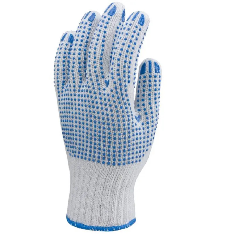 4355- MV kötött PES/pamut fehér cérnakesztyű, két oldalon kék pöttyök 9