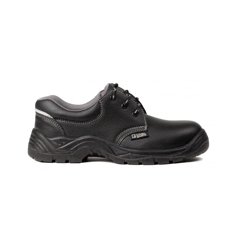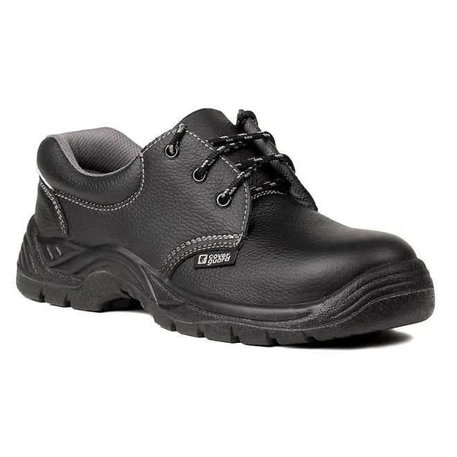 Biztonsági védőcipő bőrből, acél lábujjvédő leeső tárgyak ellen, acél talplemez talpátszúrás ellen. Olajálló, antisztatikus, kétrétegű PU talp, SRC fokú nedves kerámia és acél felületre bevizsgált csúszásmentességgel. Sarokrészen fényvisszaverő díszcsík. Szellőző hálós alapanyagú belső bélés. Nedves kerámia és acél felületre bevizsgált, emelt szintű SRC csúszásbiztosság.