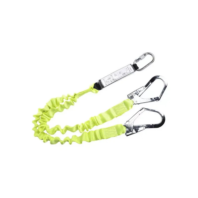 Kettős végződésű, Y kialakítású rugalmas poliészter hevederszalag, mely energiaelnyelővel, karabinerrel és két akasztóhoroggal készül.
