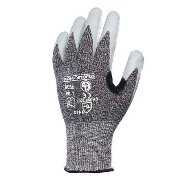 MV szerelőkesztyű, vágásbiztos HPPE, szürke pu/nitril tenyér 11, 6841