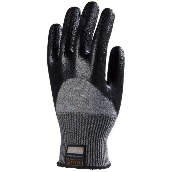 - Taeki 5® 13-as kötésű multiszálas védőkesztyű: rendkívüli kopásállóságú és szakítószilárdságú, 5-ös szintű, kiemelten vágásbiztos és rugalmas alapanyagok (Spandex®, szintetikus- és üvegszálak)