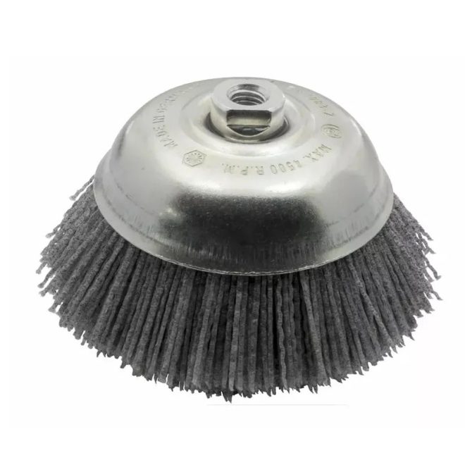 Novofil® csiszolóanyaggal ellátott fazékkefe, ipari minőségű, sarokcsiszolóhoz.