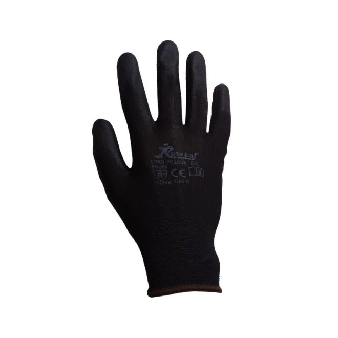C22B PU mártott FEKETE szerelőkesztyű, Páranként csomagolt, 7-es, RW-C22B-07